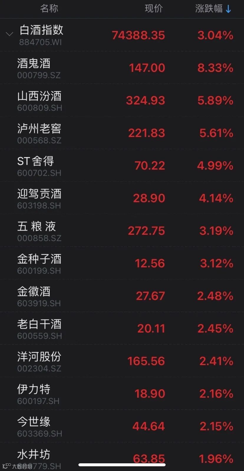 白酒板块表现活跃
