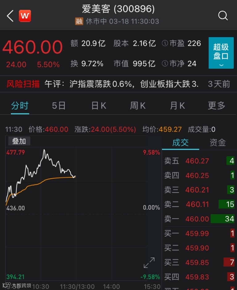 有着“女人的茅台”之称的爱美客盘中一度涨逾9%。截至午间收盘,涨幅收窄为5.50%,最新总市值为995亿元。
