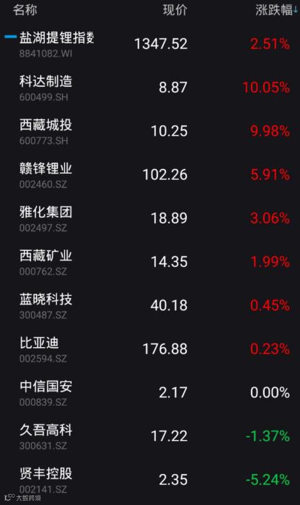 盐湖提锂板块当日成交额98.01亿元,科达制造、西藏城投涨停。