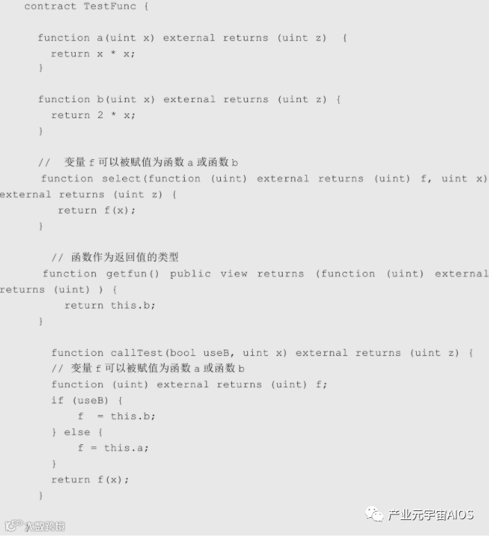 以下示例展示了合约A中的重载函数f()。
