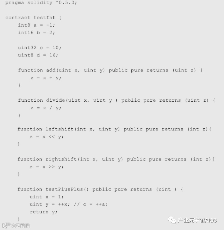 因此,表示不同空间大小的整型有:uint8、uint16、uint32……uint256,int同理,无数字时uint和int对应uint256和int256。