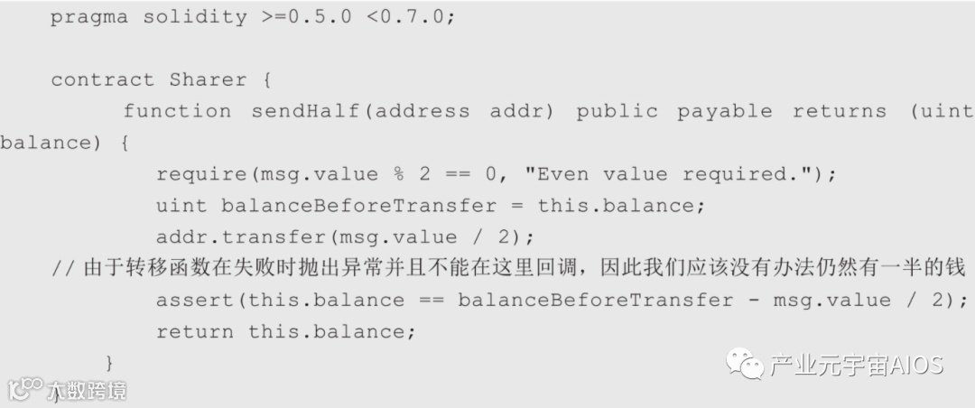 (2)用于检查合约调用返回值,如require(external.send(amount))。