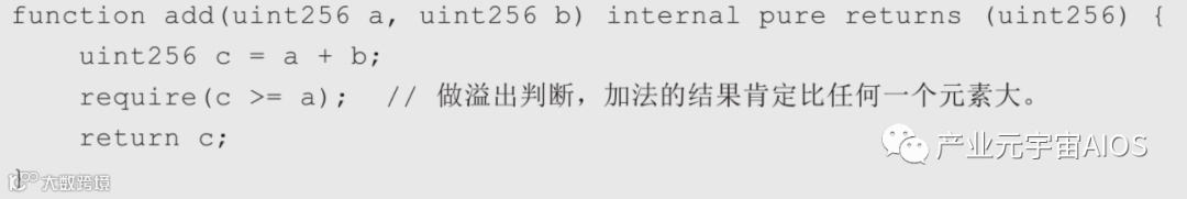 以上函数使用require进行条件检查,当条件为false的时候,就是抛出异常,并还原交易的状态,关于require的使用方法在本书6.3节会作进一步介绍。