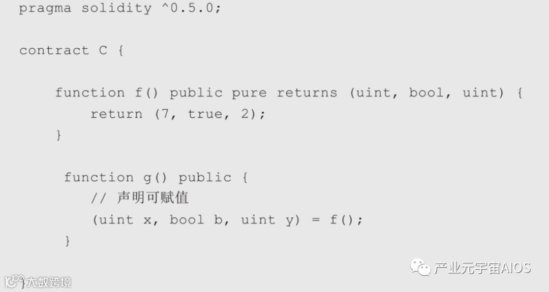 Solidity内置支持元组(tuple),它是一个由数量固定、类型可以不同的元素组成的一个列表。