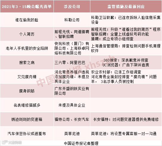 昨夜,央视3·15晚会一共曝光了9个问题,包括商店安装摄像头抓取人脸信息、知名招聘平台简历给钱随意下载、搜索网页中的医药造假链条、瘦肉精羊流向多地、汽车设计缺陷甩锅给车主等,涉及上市公司包括三六零、前程无忧、长安汽车,其中三六零和长安汽车为A股上市公司。