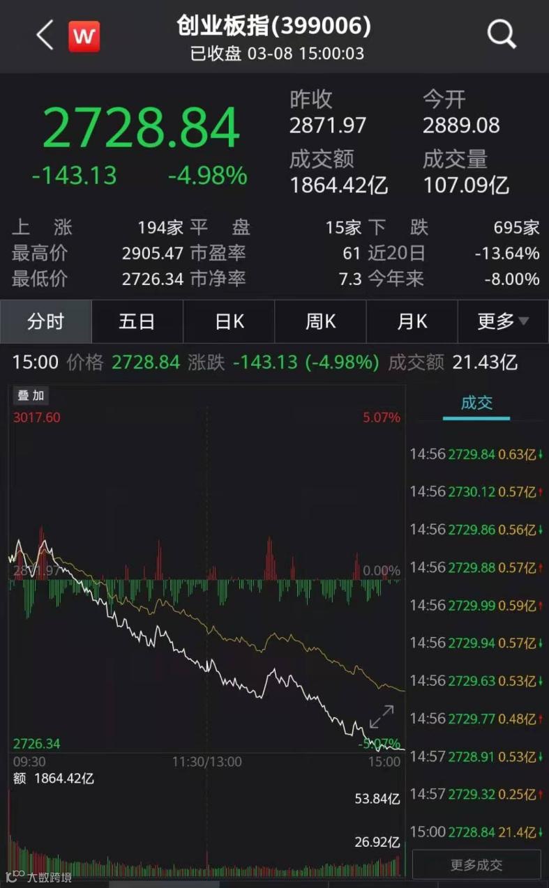 ➤创业板大跌5%,白马股全线杀跌,茅指数抹去今年全部涨幅!小票却掀涨停潮,到底咋回事