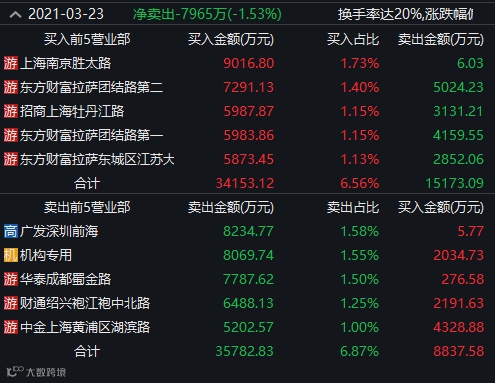 23日盘后龙虎榜显示,南网能源全天遭净卖出7965万元,其中卖一为广发证券股份有限公司深圳前海证券营业部,卖二为机构专用席位。值得一提的是,知名的“拉萨军团”——东方财富拉萨团结路第二营业部、东方财富拉萨团结路第一营业部、东方财富证券股份有限公司拉萨东城区江苏大道证券营业部均现身买入前五席位。