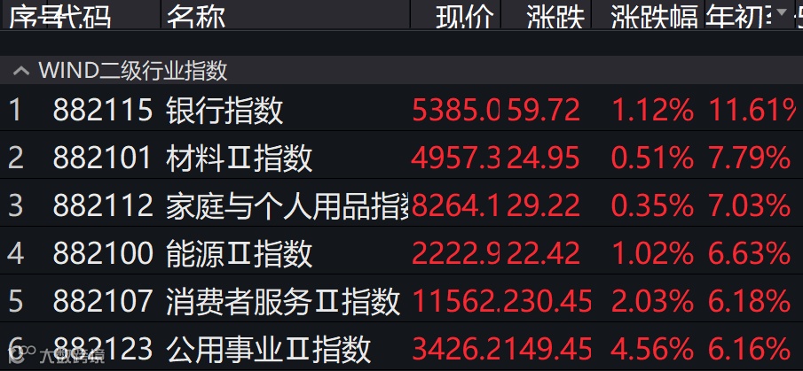 Wind数据显示,2021年以来,银行板块涨幅达11.61%,在24个Wind二级行业中排名第一。