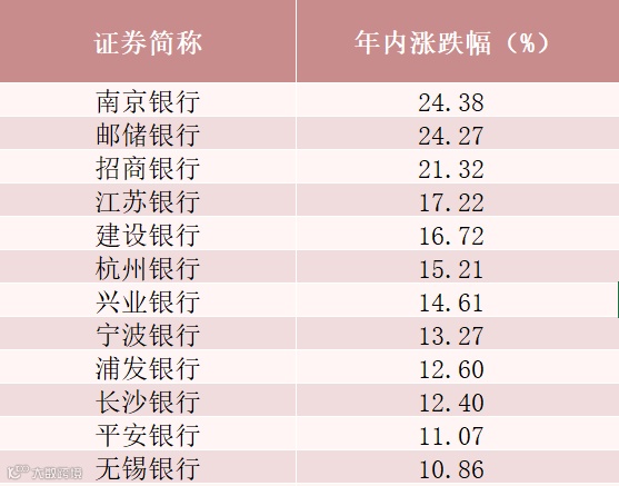 2021年以来,银行股表现颇为亮眼。38家上市银行中,共有28家银行实现上涨,有12家银行涨幅超过10%。其中,南京银行、邮储银行、招商银行涨幅更是超过了20%。