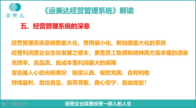 8点40分,董事长韩晓燕开始做运美达《五大系统解读》的培训,之后由副总经理张玉坤解读《运美达经营管理系统》。