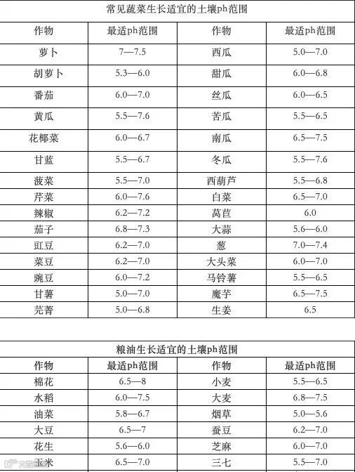 从上图我们可以看出,大多数作物在土壤中性的时候最易生长,反之,土壤过酸过碱对于作物正常生长都有影响。