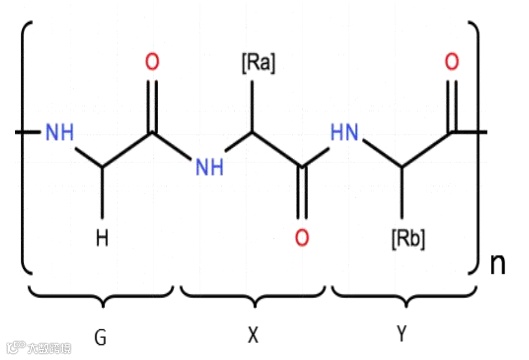 其特有的活性三螺旋结构,三螺旋网状结构能够结合众多水分子,相邻三螺旋之间的相互作用形成致密规整的胶原纤维,大量的亲水性氨基酸紧密吸附大量的水分子,生成结合水,能够锁住皮肤储水层中水分,为各种皮肤细胞提供支撑。