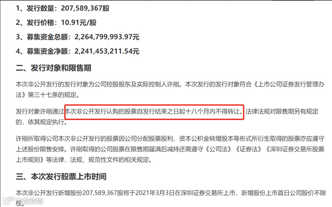 3月1日晚,公司发布关于《非公开发行股票发行情况报告书暨上市公告书》的公告。公告显示,本次非公开发行新增股份约2.08亿股将于2021年3月3日在深圳证券交易所上市,新增股份上市首日公司股价不除权。本次非公开发行的发行对象为公司控股股东及实际控制人许刚,发行价格为10.91元/股,募集资金总额约为22.65亿元。本次非公开发行募集资金在扣除相关发行费用后,将全部用于年产20万吨氯化法钛白粉生产线建设项目及补充流动资金。
