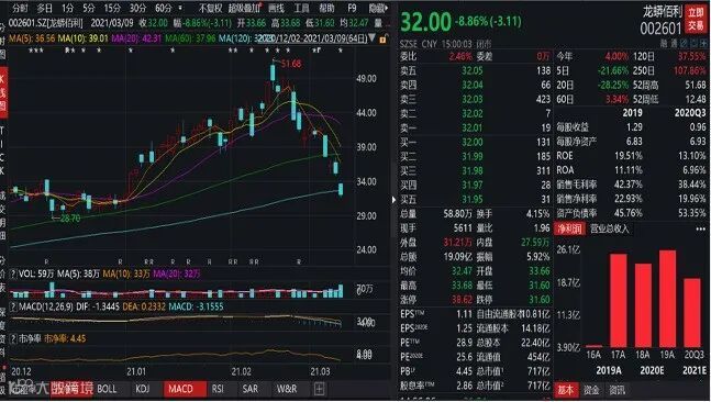 Wind数据显示,龙蟒佰利股价于2月18日冲高至51.68元后回落,此后,股价接连下挫。Wind数据显示,截至3月9日收盘,公司股价收报32元/股,市值为717亿元。