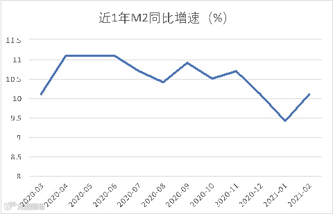 民生银行首席研究员温彬表示,从趋势上看,本月M2涨幅与2020年12月持平,更加符合疫情之后M2的整体走势,印证了1月M2录得较低增速主要是由于季节性扰动所致。本月财政支出加大力度,相当于加快了货币投放。另外,本月新增人民币贷款亦超出市场预期,信贷派生力度增强,推动M2向去年以来的整体趋势回归。