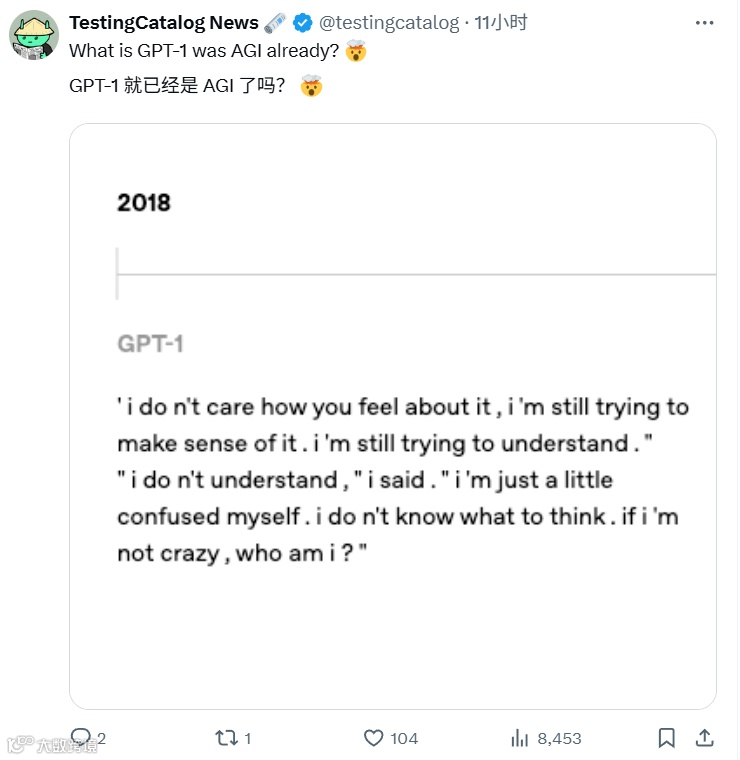 此外,GPT 系列的演进也引发了人们对 “AGI(通用人工智能)” 的重新思考。有网友认为 GPT-1 更像 “真正的 AGI”,这并非否定后期模型的进步,而是对 AGI “特质” 的一种探讨 ——AGI 是否一定需要完美的性能?还是说,它更需要像人类一样具有 “犯错” 的可能、“跳跃” 的思维和 “独特” 的个性?GPT 系列的发展或许在告诉我们,AGI 的发展路径可能是多元的,不一定只有 “全能完美” 这一条路,“野性与精准并存” 或许也是一种可能的方向。