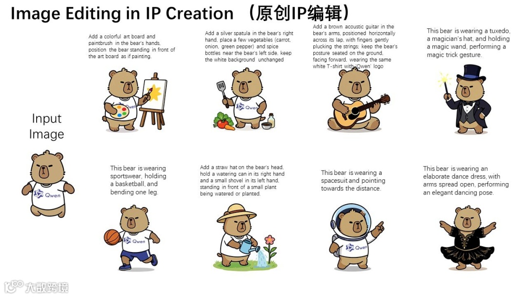 Qwen-Image-Edit 重新定义了 AI 图像编辑的边界,其核心能力覆盖多个维度。在语义与外观的融合方面,既支持低层次外观编辑,能进行像素级精准操作,如移除发丝、修改字母颜色等,且其他区域完全保持不变,例如在修改海报中的字母 "n" 时,模型能精确匹配原有字体的笔触和光影;也支持高层次语义编辑,允许整体像素变化但保持语义一致性,以风格迁移为例,输入人物头像后,模型可一键生成吉卜力、赛博朋克等多种艺术风格,同时保留人物身份特征,在 IP 创作中,基于卡皮巴拉吉祥物生成的 MBTI 表情包系列,通过调整表情、服饰等元素,实现了角色形象的多样化拓展。
