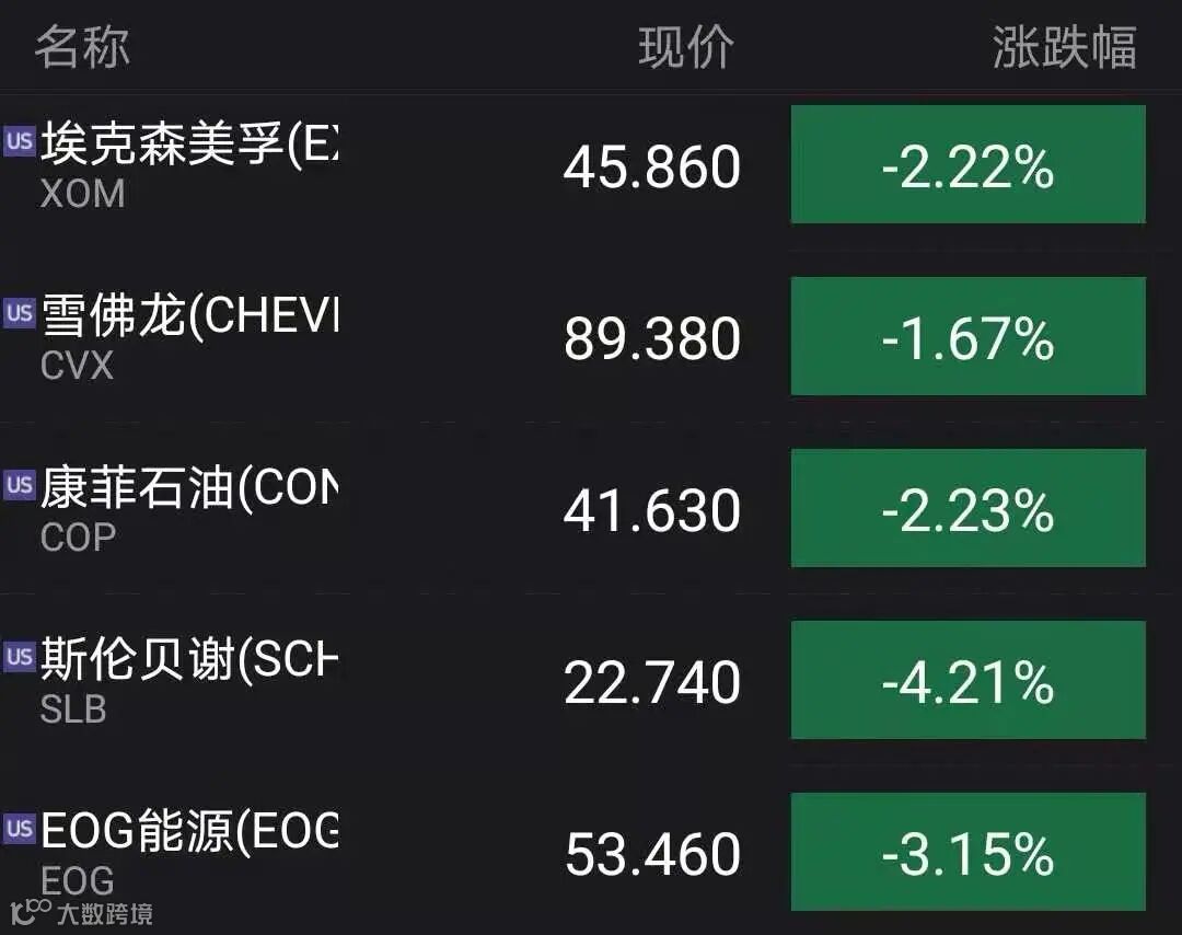 能源股全线走低。