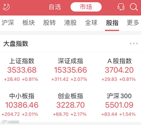 受资金面情绪持续平复、海外股指高位企稳等积极因素推动,今天沪深两市主要股指继续震荡走升。其中,深证成指、创业板指全天上涨逾2%。