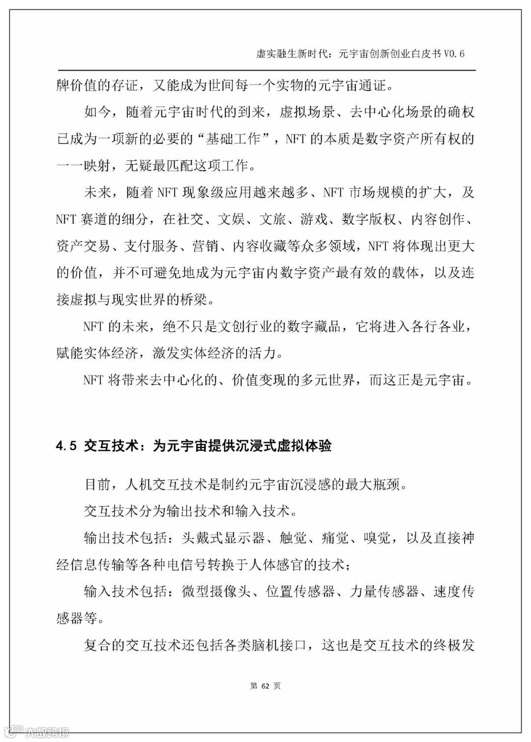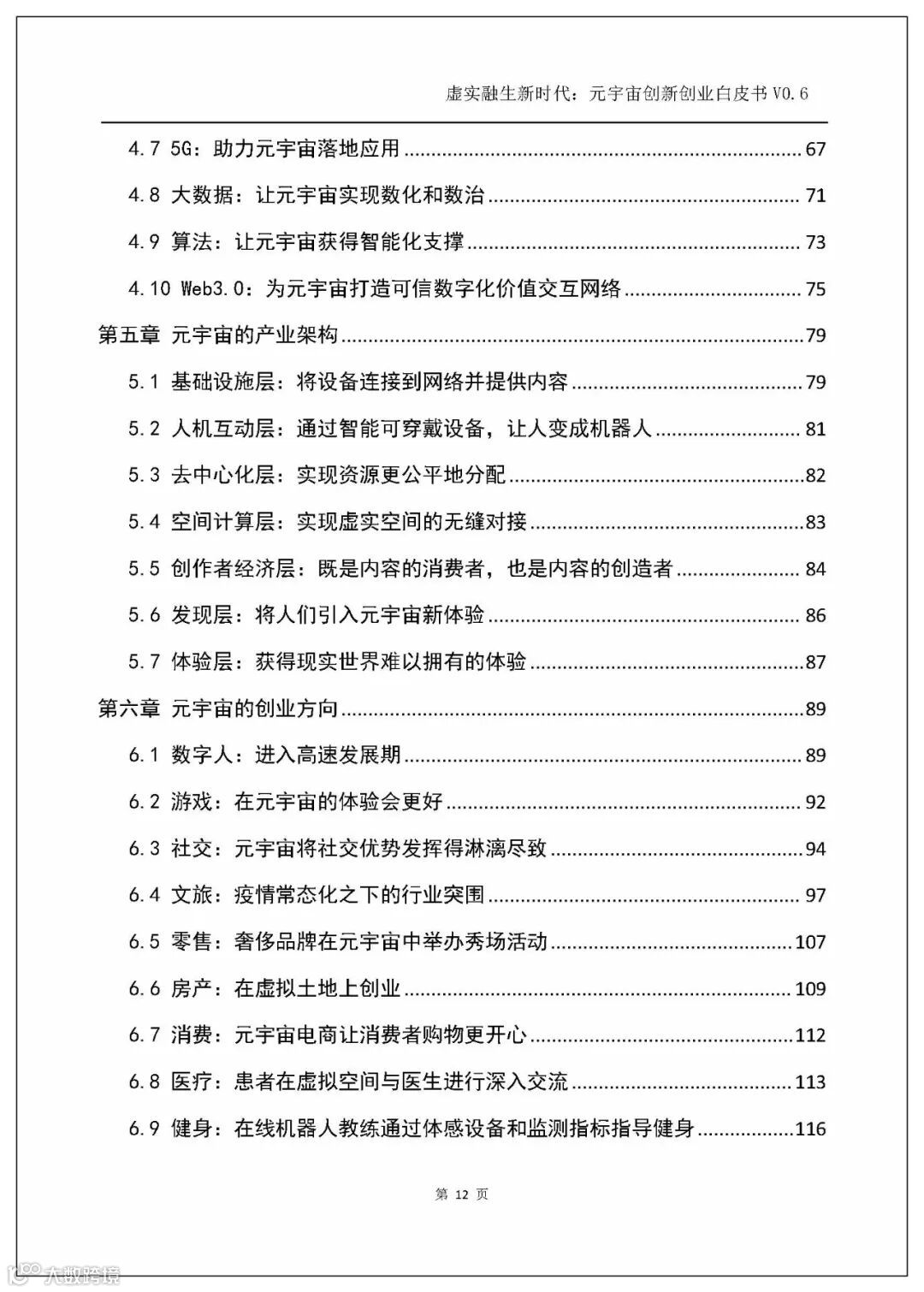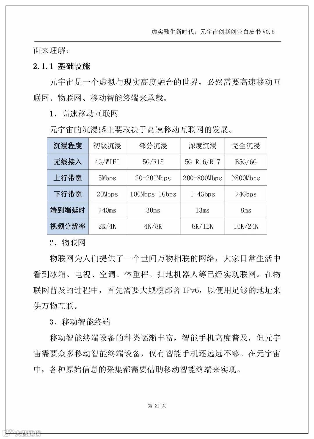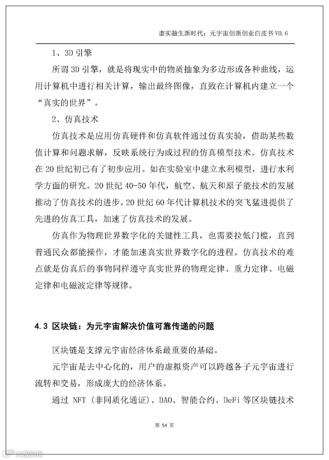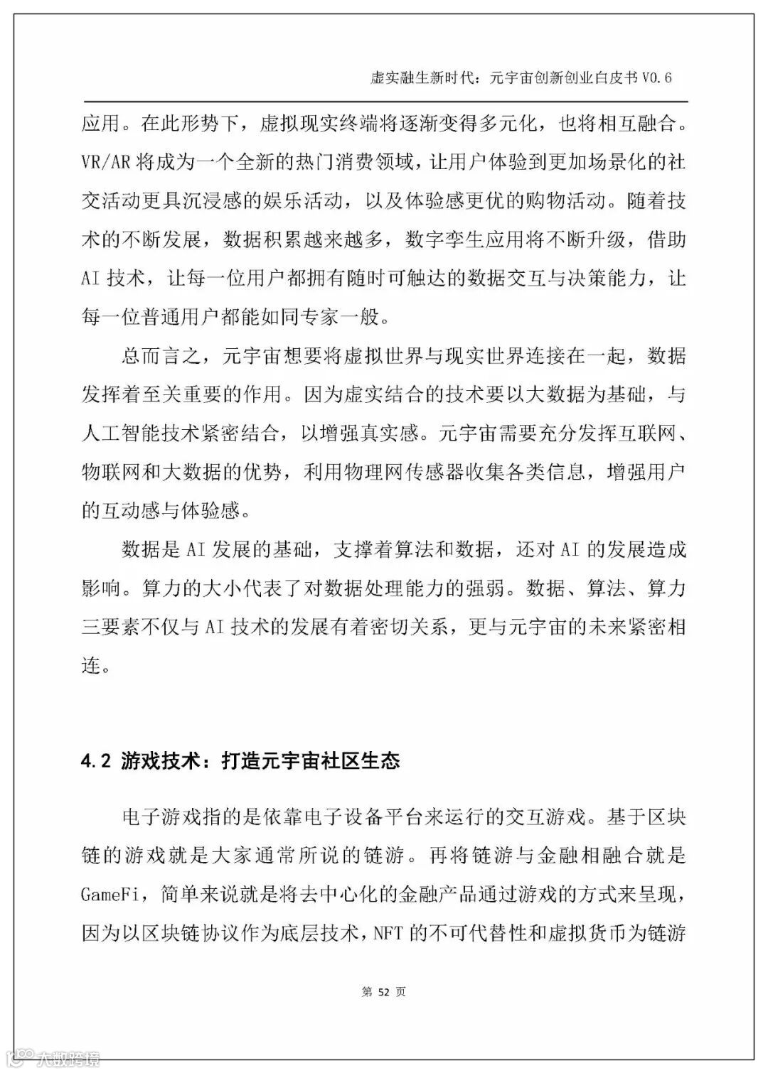 白皮书以人工智能、电子游戏技术、区块链、NFT、交互技术、物联网、5G、大数据、算法、Web3.0这几个主流技术发展方向为横坐标,剖析元宇宙的技术创新。