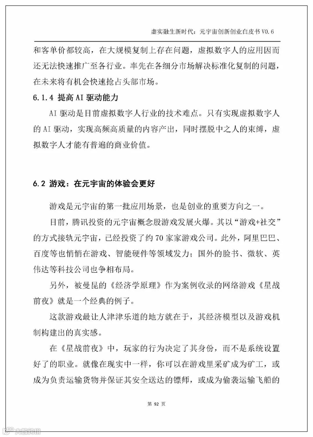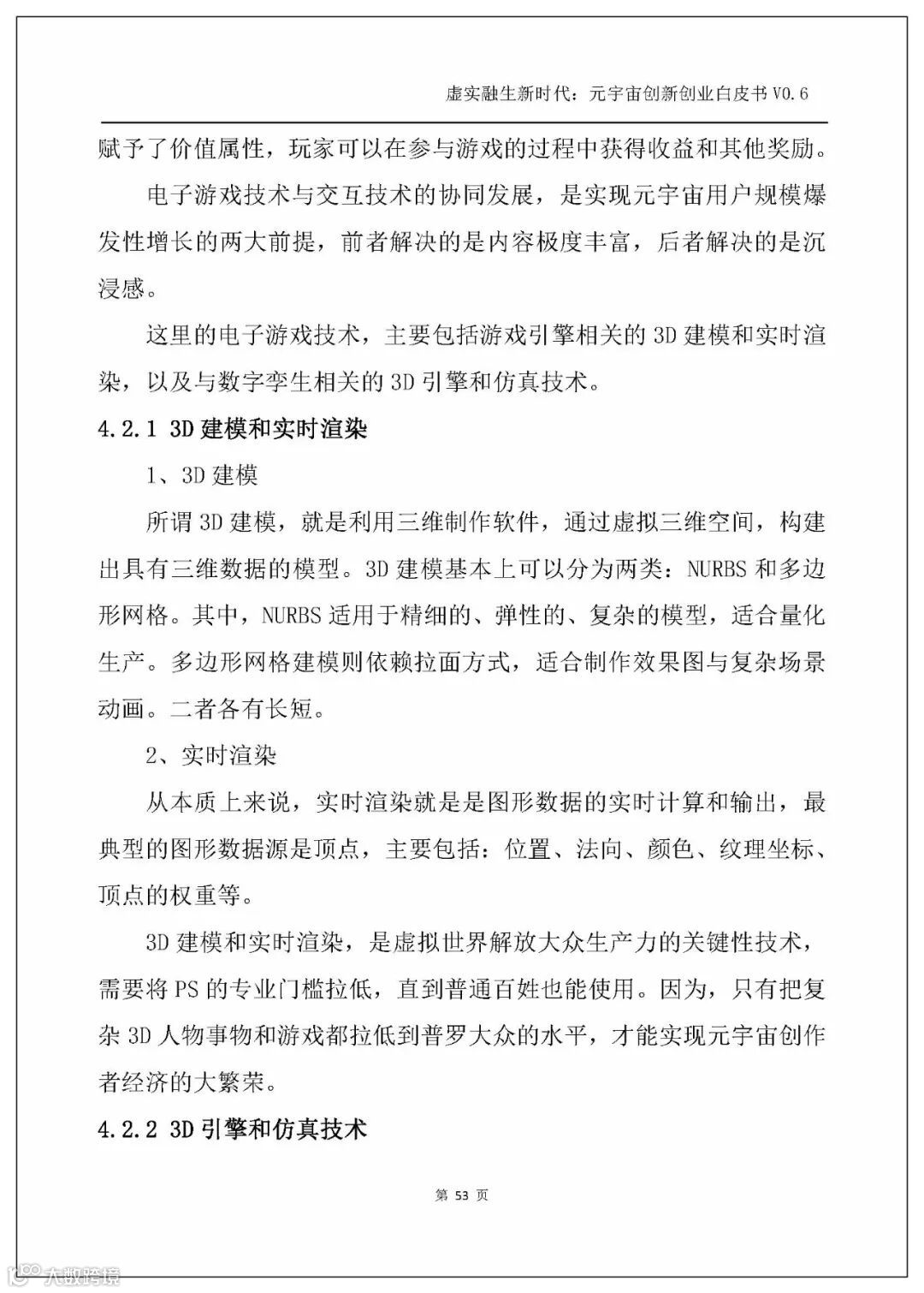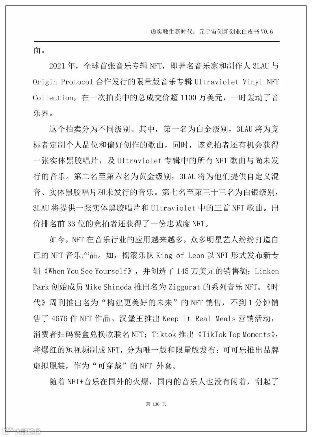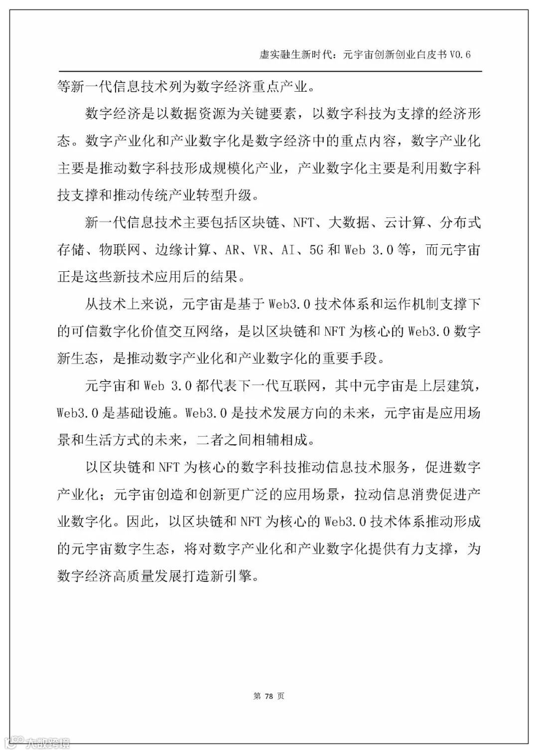 白皮书以人工智能、电子游戏技术、区块链、NFT、交互技术、物联网、5G、大数据、算法、Web3.0这几个主流技术发展方向为横坐标,剖析元宇宙的技术创新。