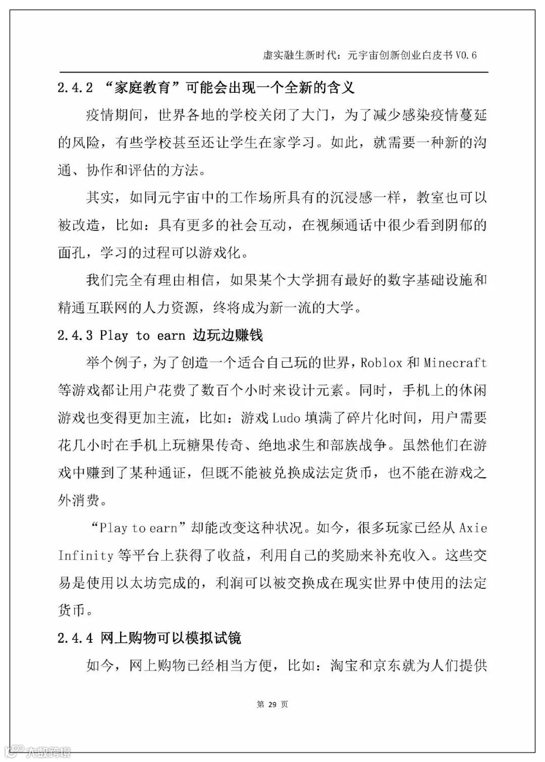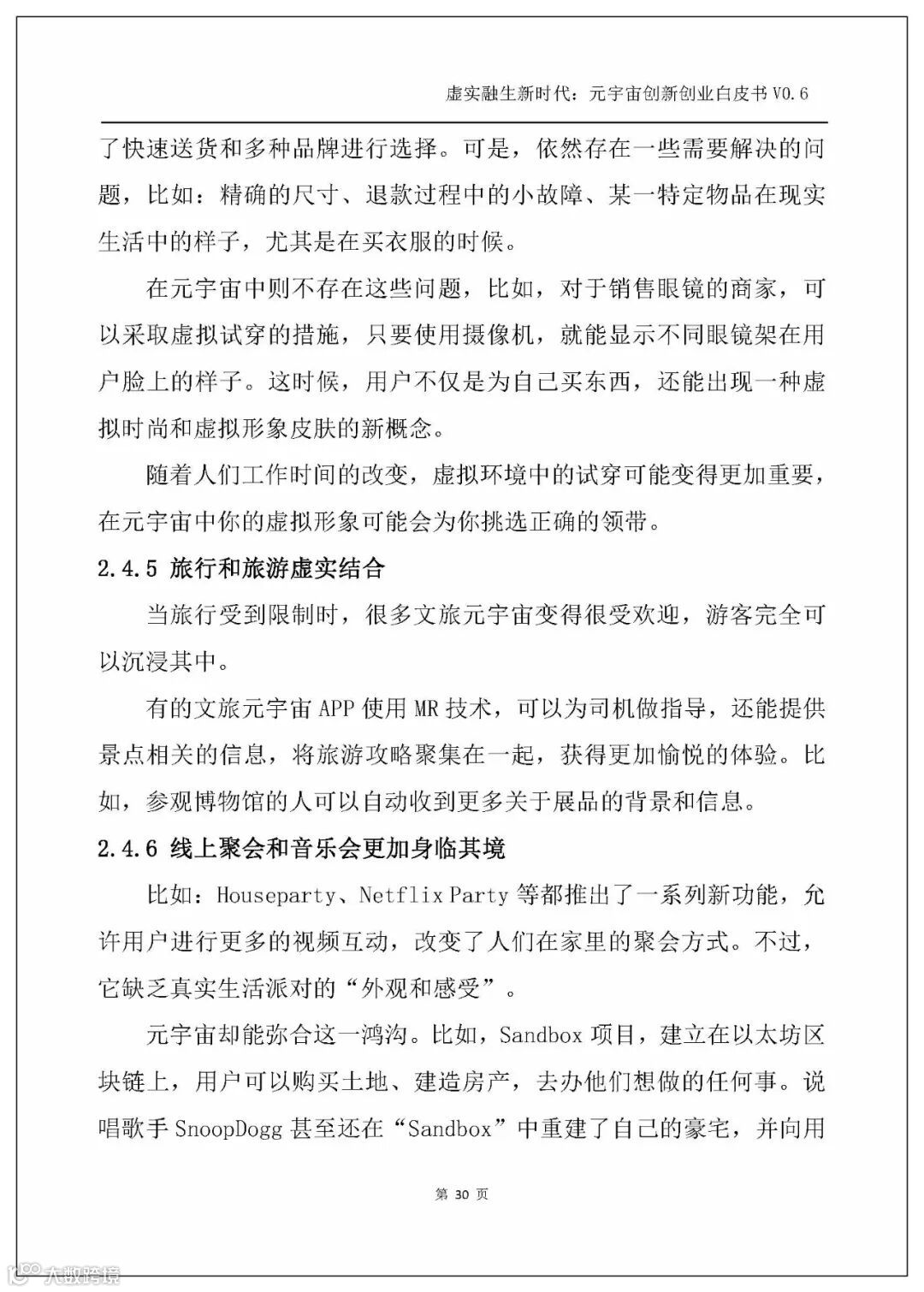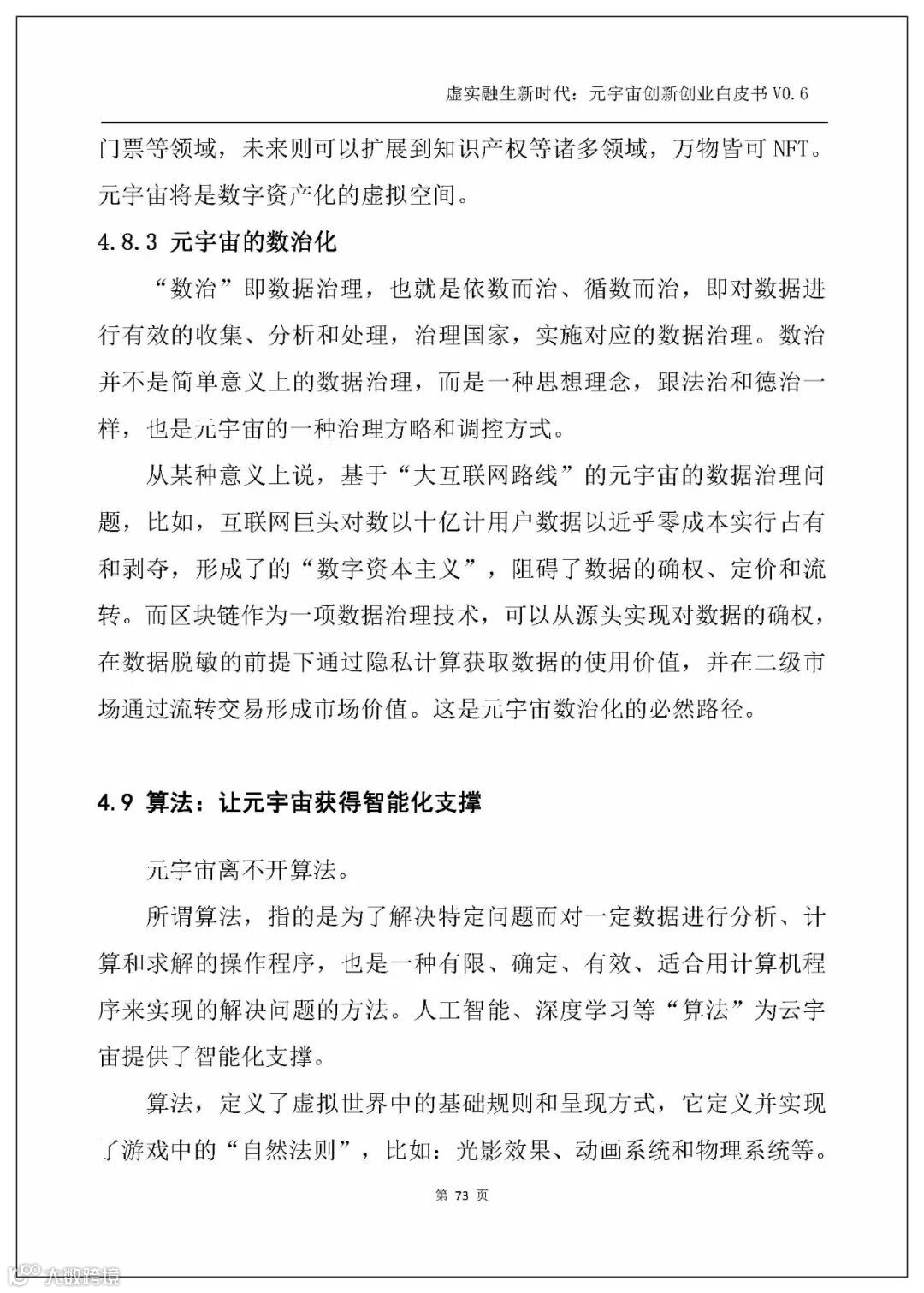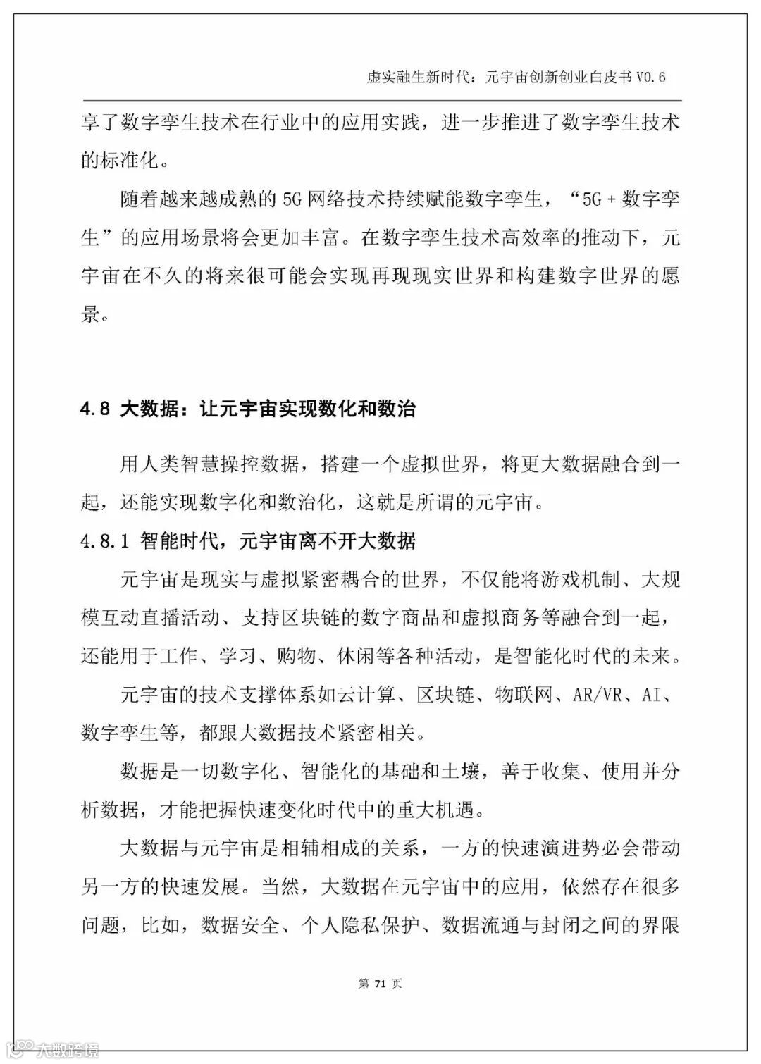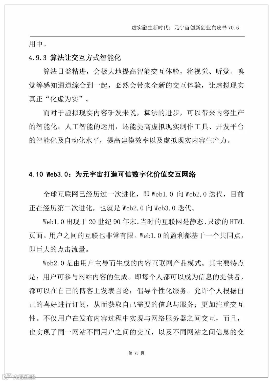 白皮书以人工智能、电子游戏技术、区块链、NFT、交互技术、物联网、5G、大数据、算法、Web3.0这几个主流技术发展方向为横坐标,剖析元宇宙的技术创新。