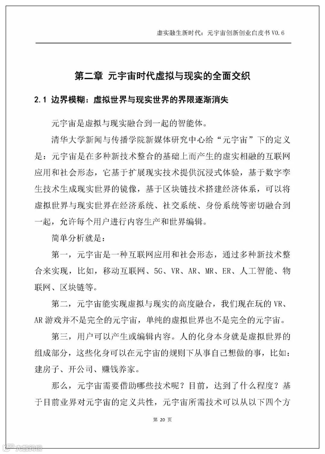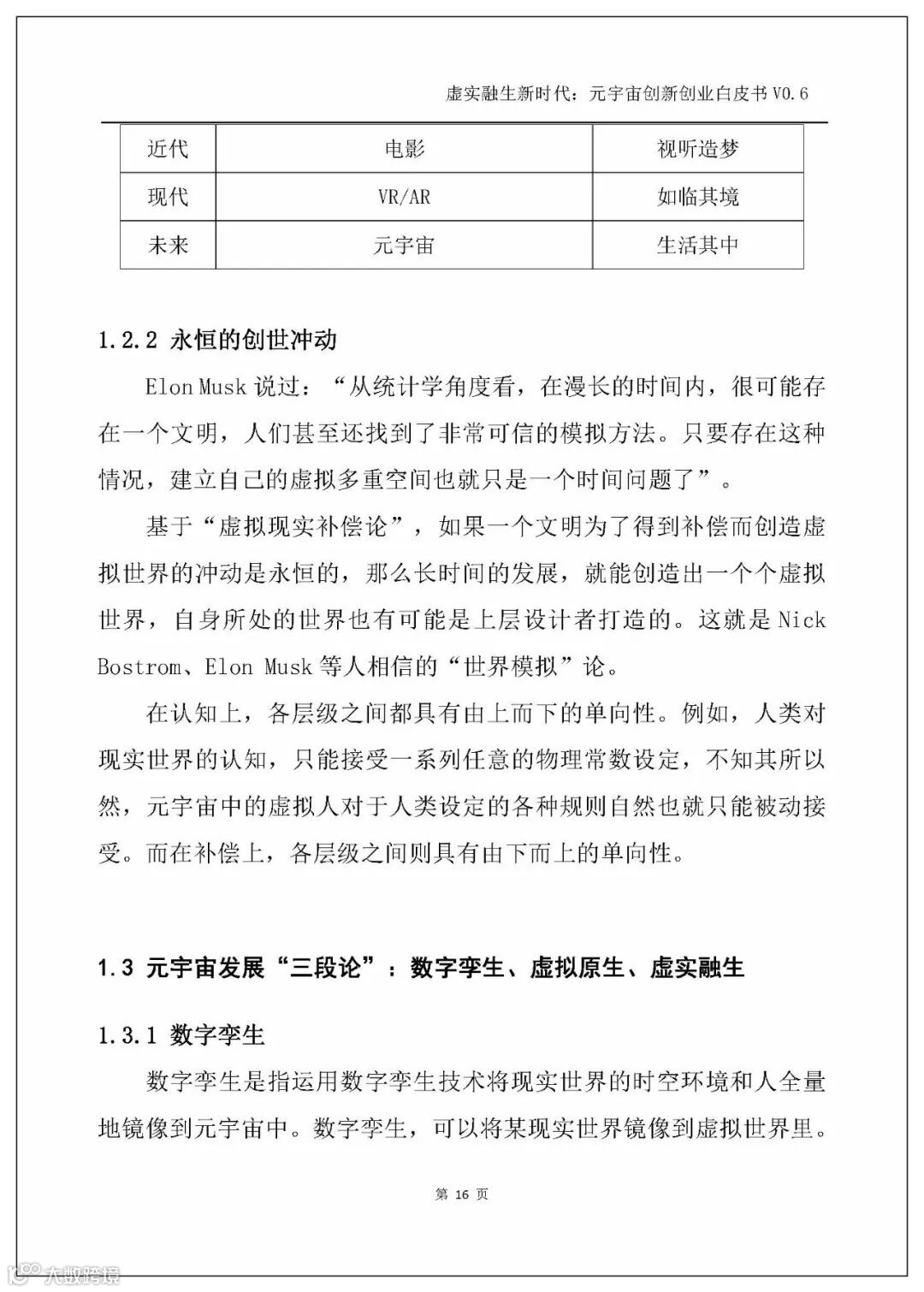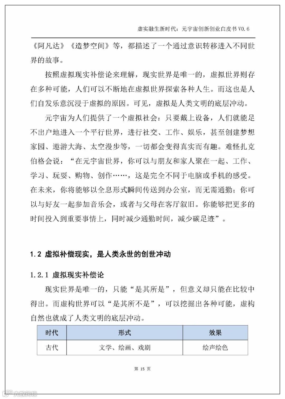 白皮书从虚拟与现实的关系出发,基于“虚拟现实补偿论”提出“虚拟补偿现实,是人类永世的创世冲动”,而元宇宙时代是虚拟与现实的全面交织的时代,故而下一个时代便是一个基于元宇宙的虚实融生的新时代。