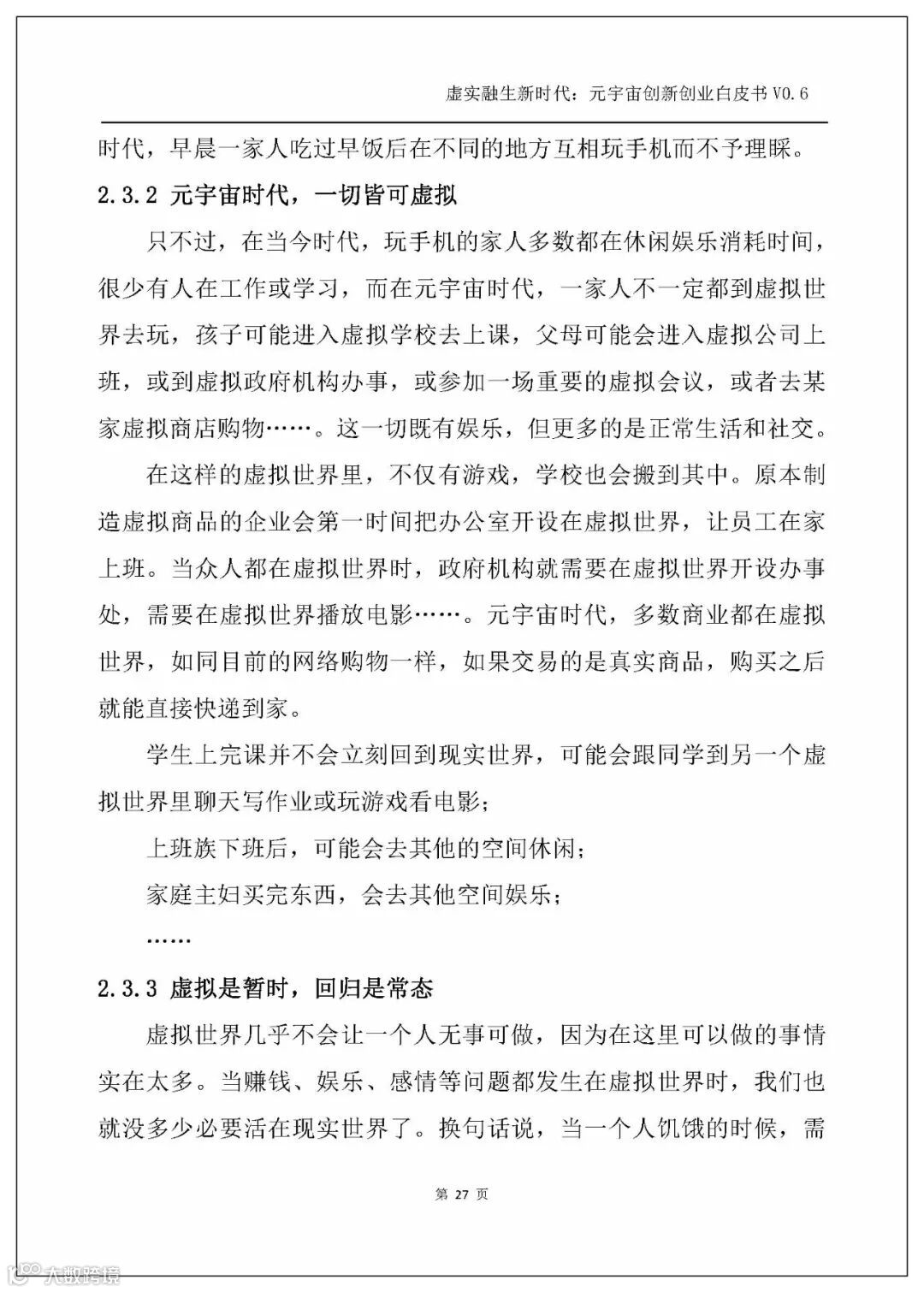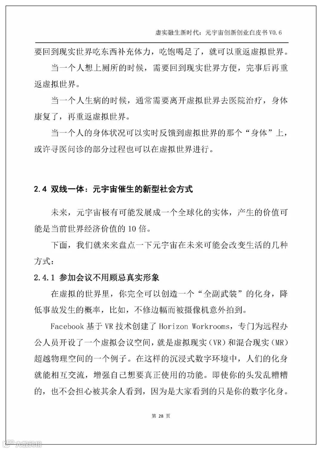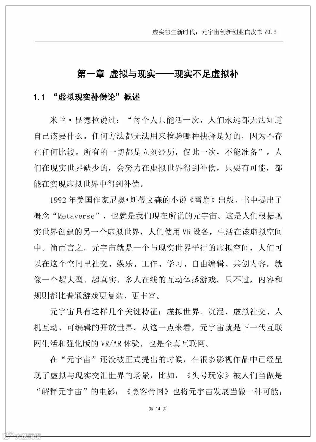 白皮书从虚拟与现实的关系出发,基于“虚拟现实补偿论”提出“虚拟补偿现实,是人类永世的创世冲动”,而元宇宙时代是虚拟与现实的全面交织的时代,故而下一个时代便是一个基于元宇宙的虚实融生的新时代。