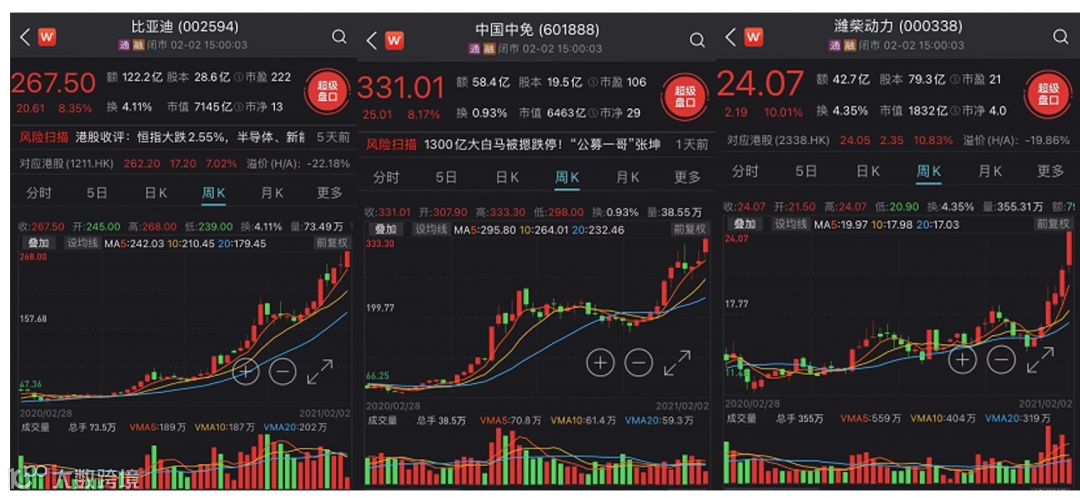 2月2日,A股抱团行情卷土重来,带动三大股指全线上涨。其中,白酒、新能源汽车产业链等前期强势品种爆发,比亚迪、中国中免等行业龙头股再创历史新高。