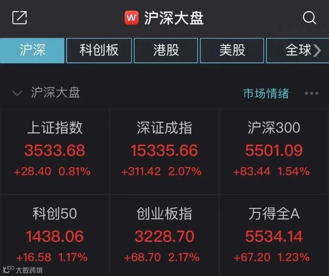 今日A股主要股指走势图
