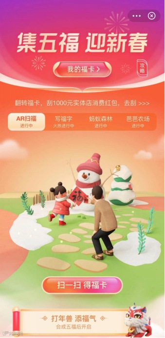 2月1日,支付宝集五福活动如期而至,今年的集五福活动截止时间为除夕之夜22点,集齐五福的可以在除夕22点18分拼手气瓜分5亿元现金。