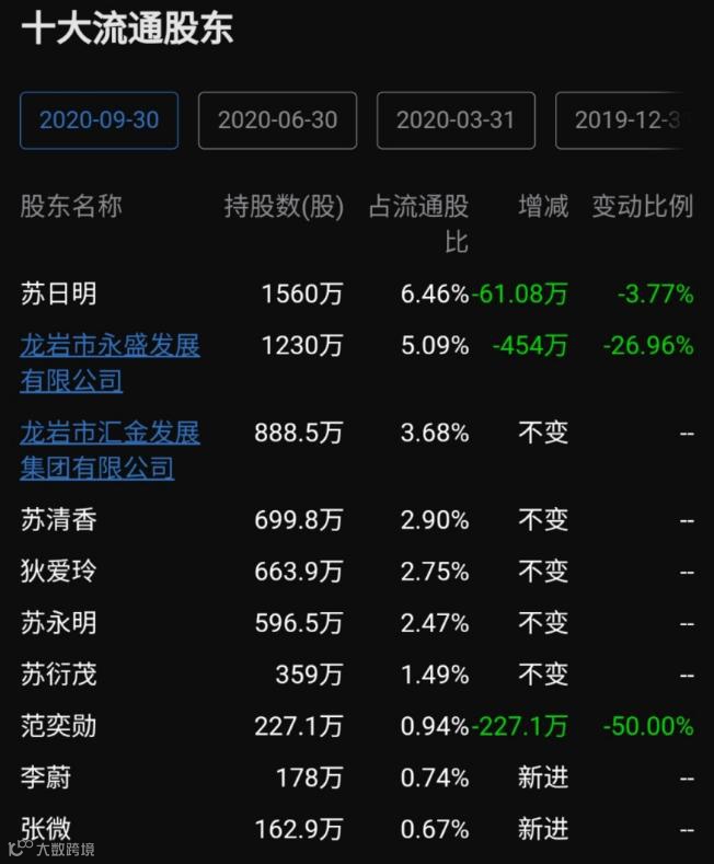 截至2020年三季度,公司股东数量为3.88万,公司前十大流通股东累计持有6565.83万股,累计占流通股比为27.19% ,较上一季度减少832.97万股。