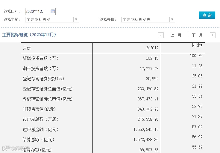 根据中国结算官网最新披露数据,2020年12月市场新增投资者162.18万,同比增幅达100.39%,为2020年月度投资者同比增幅次高水平。