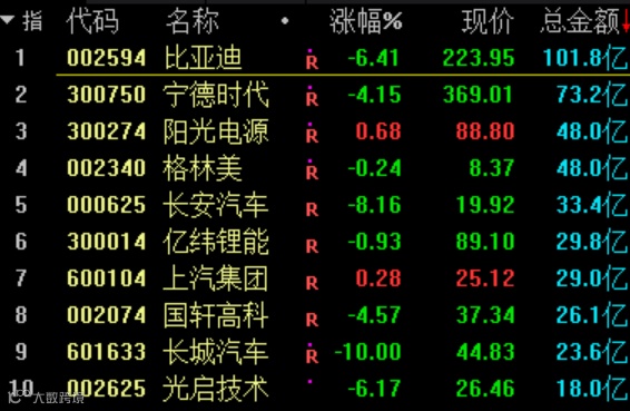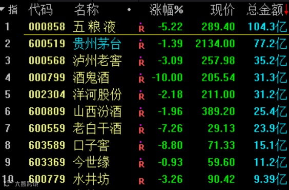 前期市场重点抱团的行业板块,如新能源车、酿酒、军工、食品饮料等,则在今天遭遇大面积杀跌。不少人气大市值龙头股,单日跌幅达5%左右,甚至是以跌停板报收。
