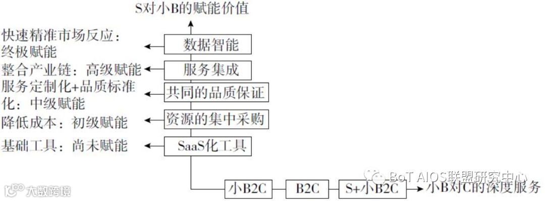 降低人工沟通成本,同时依附于平台降低运营成本、提高效率,小B就可以把精力都放在创造客户价值上,这就是给B端赋能的过程。