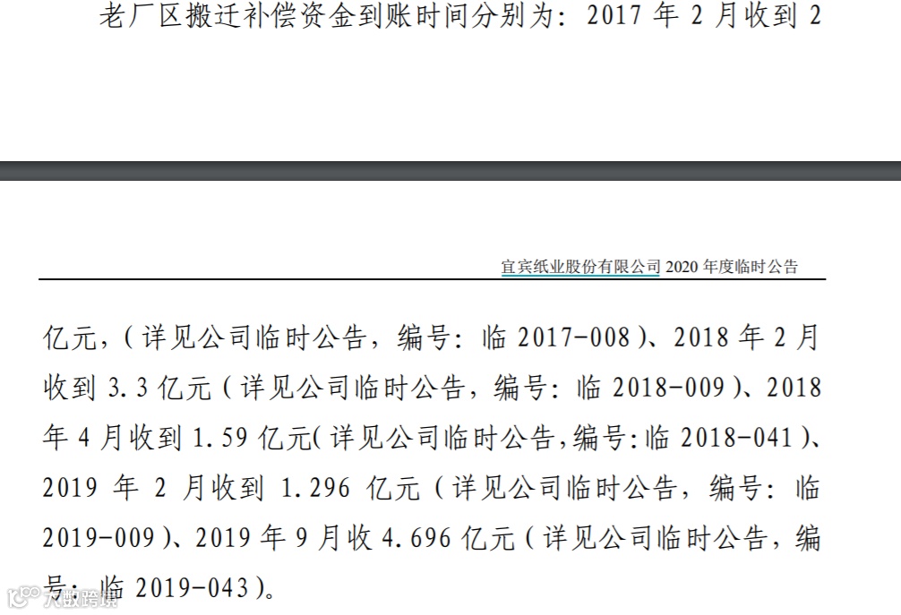 中证君注意到,2011年,该公司因宜宾城市规划需要实施整体搬迁,而近年来宜宾纸业是靠着搬迁补偿款在A股上“存活”,从2017年2月-2019年9月,宜宾纸业共收到12.88亿元搬迁补偿资金。