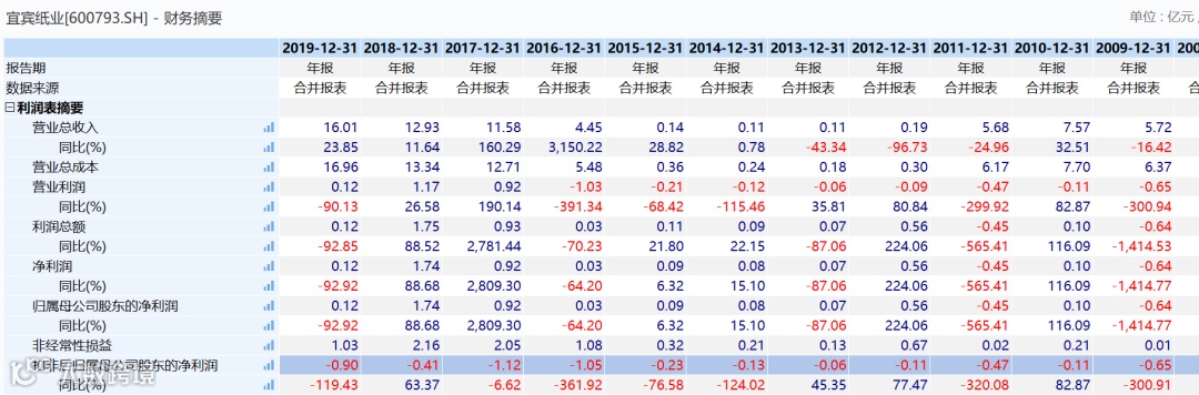 实际上,这已不是宜宾纸业首次扣非净利润亏损,从2005年开始,宜宾纸业已连续15年扣非后净利润为负。扣非净利润一直为负,说明这15年来宜宾纸业的盈利全不是靠主业。