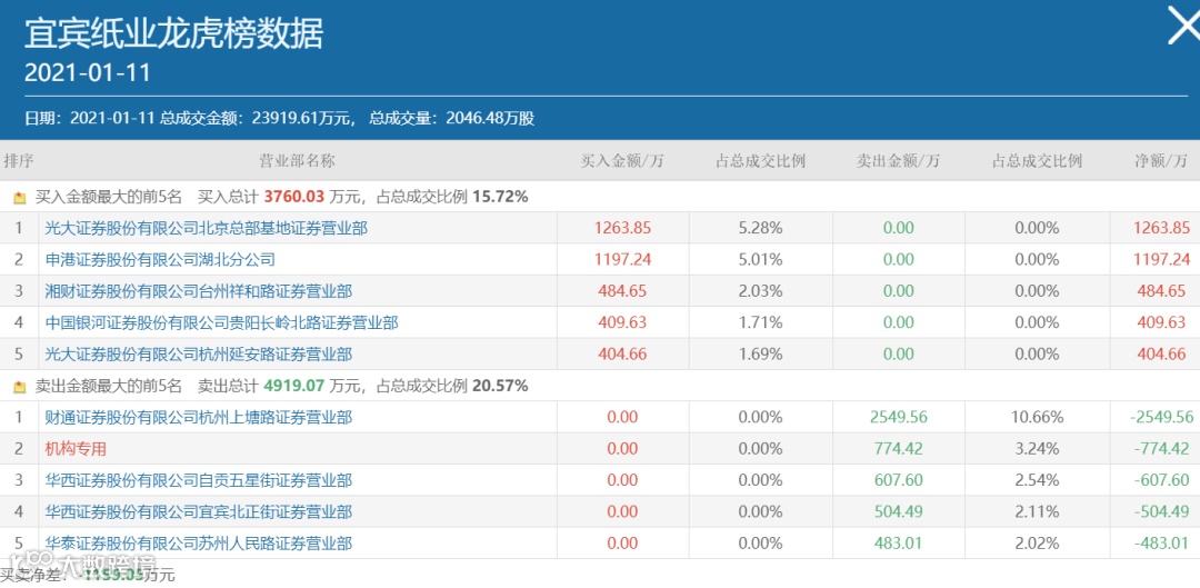 值得注意的是,1月11日机构专用席位卖出宜宾纸业774.42万元。