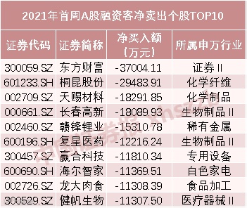 部分非银金融、医药、新能源个股上周获融资客大额减仓。Wind数据显示,上周东方财富融资净卖出金额达3.7亿元,在937只被减仓个股中,排名第一;上周净卖出金额较大的,还有复星医药、赣锋锂业、长春高新、天赐材料、桐昆股份等个股,净卖出金额均在1亿元以上。