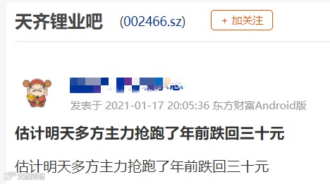 公告一出,天齐锂业的股吧热闹非凡,投资者从一开始的“至少5个涨停板,春节前站上90元”到“年前跌回30元”,瞬间态度转变。