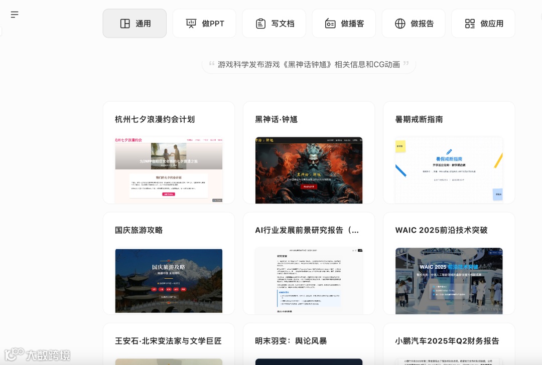 相比之下,GenSpark 虽然在数据分析和可视化方面表现出色,但其本质仍是单一智能体通过调用工具完成任务,缺乏 Tbox 这种多角色协同的深度互动。Minimax Agent 在艺术风格理解上有独到之处,但同样局限于个体能力范畴,无法实现类似 "搜索 - 分析 - 开发" 的全流程协作。扣子空间以 3 分钟生成 PPT 的速度著称,但其背后是标准化模板的快速填充,而非 Tbox 展现的动态任务规划能力。