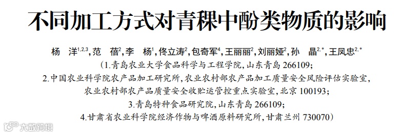 中国农业科学院孙晶、王凤忠教授等通过蒸制、煮制、炒 制、微波、烤制和空气炸锅六种热加工方式处理青稞样品,探究不同加工方式对青稞全谷物中游离多酚、结合多酚、游离黄酮、结合黄酮含量的影响,以及清除 DPPH 自由基和抑制 α-葡萄糖苷酶的能力,以期为突破青稞精深加工产品开发、营养保持和调控技 术瓶颈提供技术储备,为青稞产业的发展提供技术支撑。