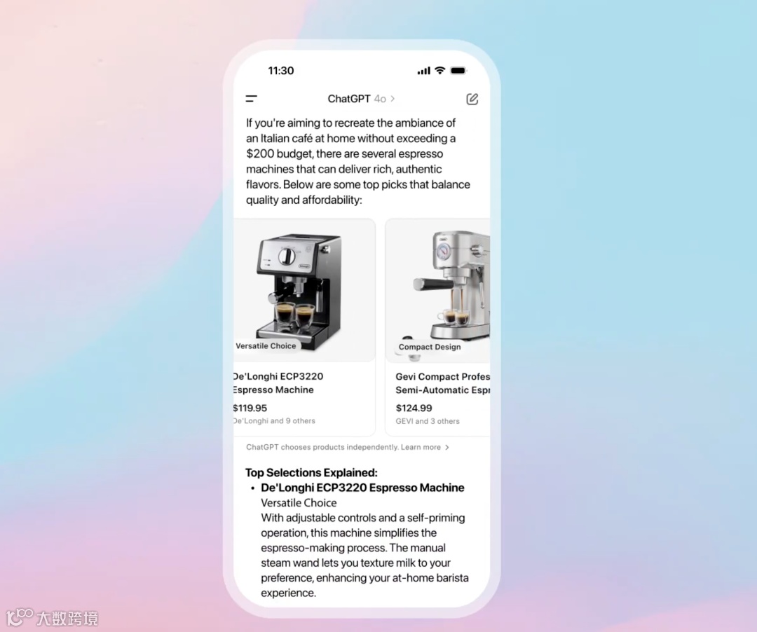 技术实现层面,ChatGPT整合了超过300个电商平台的实时数据,包括亚马逊、沃尔玛等主流渠道的价格波动、库存状态和用户评价。以用户查询“最新款iPhone价格”为例,系统会同步显示不同零售商的报价差异,并标注价格走势曲线,这种动态比价能力使消费者决策效率提升40%以上。值得关注的是,ChatGPT特别强调搜索结果的客观性,所有商品推荐均基于第三方结构化数据,未引入广告竞价机制。比如在搜索“降噪耳机”时,排名靠前的产品可能来自专业评测网站的推荐,而非商家付费推广,这种“去广告化”设计在当前信息过载的互联网环境中显得尤为珍贵。购物体验的更新从今天开始向所有可使用ChatGPT的地区的Plus、Pro、免费及未登录用户开放,预计几天内完成部署。