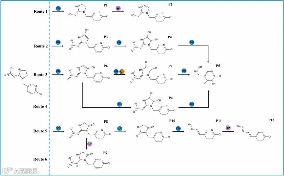 图3. 冷等离子处理诱导的吡虫啉降解潜在途径