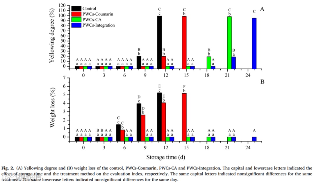 4-OH-7-C3HO-香豆素和气调贮藏结合延长削皮荸荠贮藏期12天。