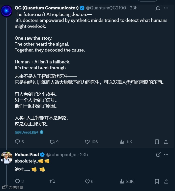 在这个医疗变革的前夜,我们目睹着 AI 从辅助工具逐渐成长为重要的诊疗伙伴。它既带来突破医学盲区的希望,也警示着技术滥用的风险;既暴露传统体系的短板,也勾勒出未来医疗的蓝图。正如那位网友在帖子末尾的提醒:“AI 是强大的助手,但人类医生的判断永远是最后一道防线。” 这种清醒的认知,或许正是开启 AI 医疗新纪元的正确钥匙 —— 在尊重医学规律的前提下善用技术,在坚守人文关怀的基础上拥抱创新,让科技与人性在医疗领域实现真正的共生共荣。当 AI 的算力与医生的仁心形成合力,那些曾被视为 “无解” 的医学谜题,终将在数据与经验的碰撞中找到答案,而每个患者的健康故事,也将因此增添更多希望的注脚。