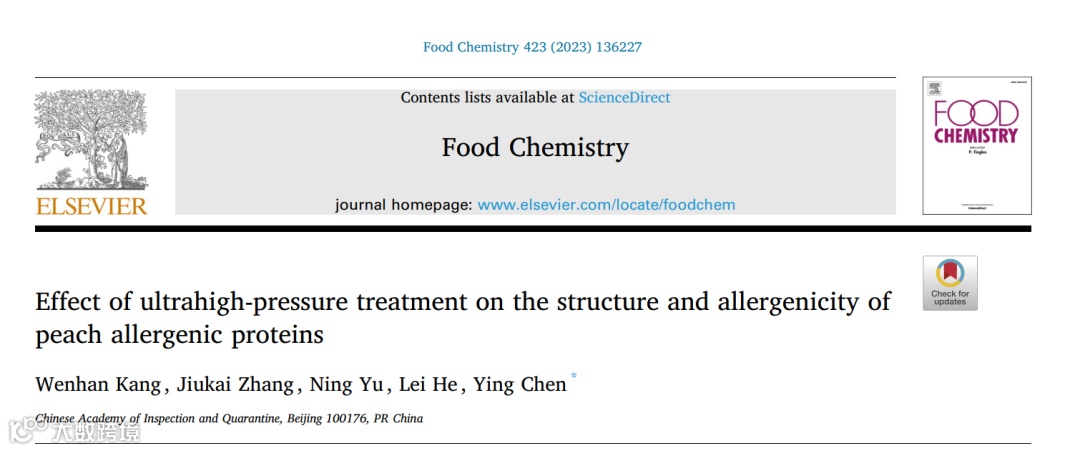 中国检验检疫科学研究院陈颖团队:超高压处理对桃蛋白结构及致敏性变化规律研究