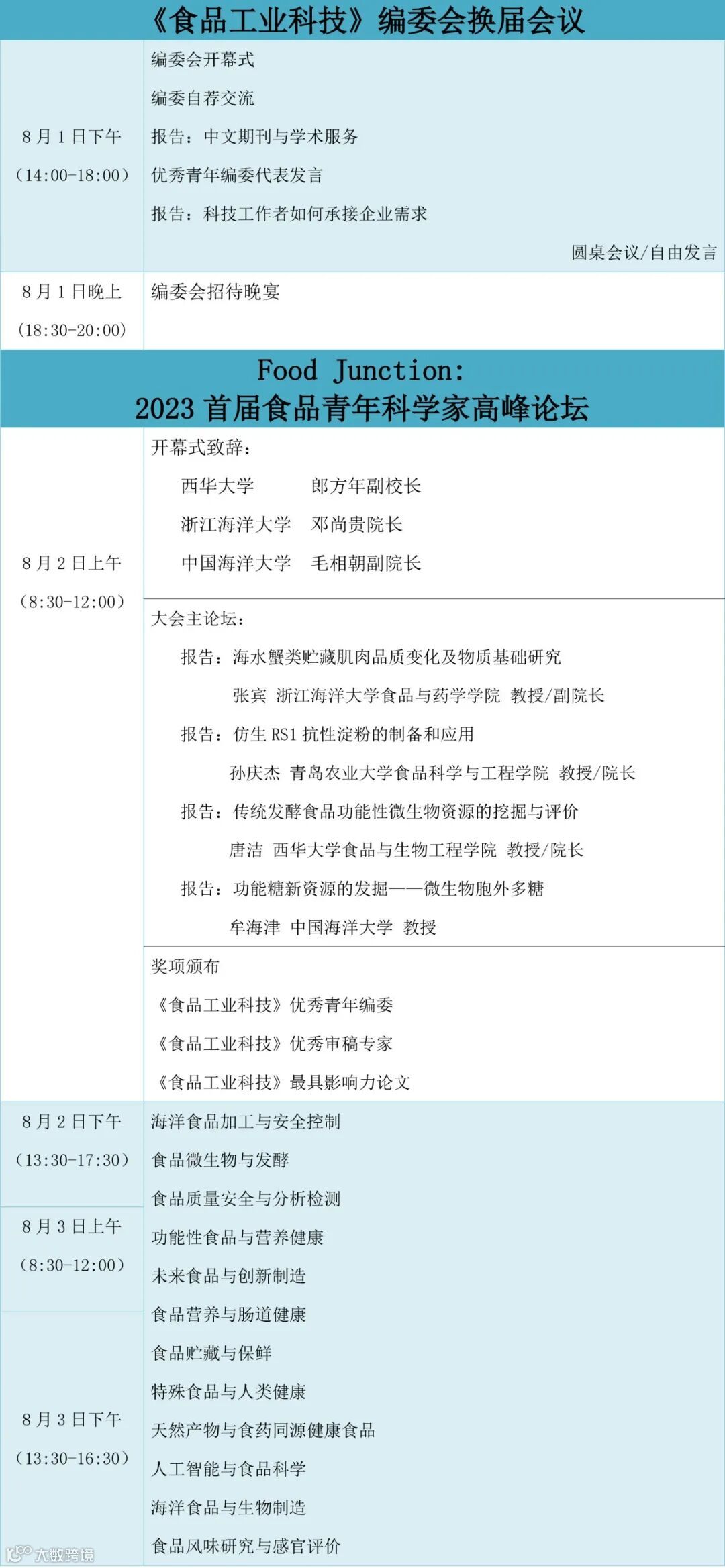 征集方向:(1)未来食品与创新制造;(2)食品微生物与发酵;(3)食品质量安全与分析检测;(4)食品贮藏与保鲜;(5)食品营养与肠道健康;(6)天然产物与食药同源健康食品;(7)功能食品与特殊食品;(8)人工智能与食品科学;(9)海洋食品与生物制造;(10)食品风味研究与感官评价