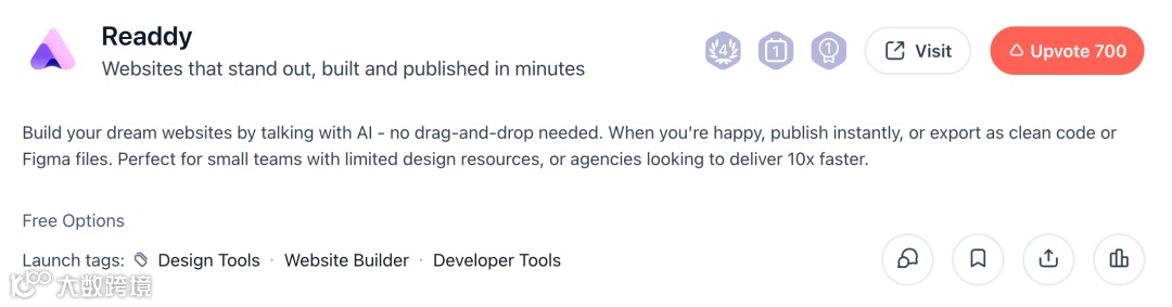 在当前这个 “工具易尝试、难留存” 的竞争激烈时代,Readdy.ai 已经成功找到了属于自己的市场定位,并且在 UI 设计赛道上率先迈出了领先的步伐。它的出现,不仅为广大用户提供了一种全新的、高效便捷的设计方式,更为整个行业的发展带来了全新的思路与方向。随着技术的持续进步以及用户需求的日益多样化,我们有充足的理由期待 Readdy.ai 在未来能够不断进行迭代优化,进一步拓展其应用边界,为更多用户创造出更大的价值,在全球范围内推动 AI 界面生成技术的广泛应用与蓬勃发展。