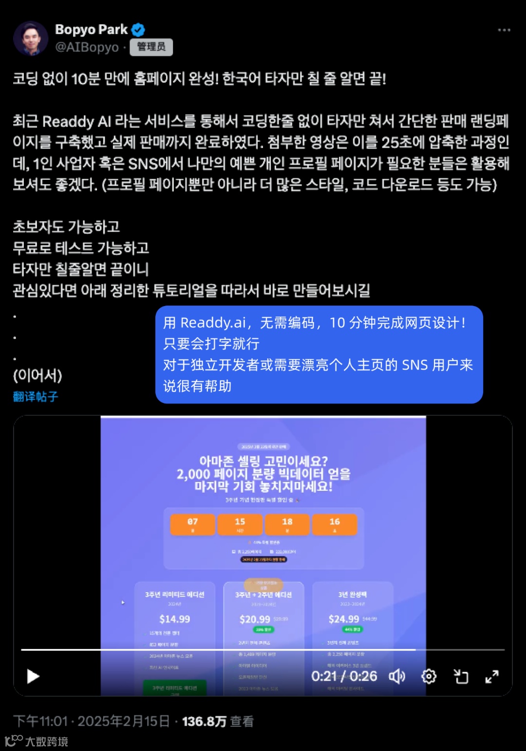 在海外市场,Readdy.ai 收获了大量来自真实用户的好评。在 ProductHunt、TikTok、Instagram 等多个热门平台上,众多用户纷纷自发分享自己使用 Readdy.ai 生成的设计案例。这些案例涵盖了各种不同类型的产品和应用场景,充分展示了 Readdy.ai 的广泛适用性和强大功能。许多用户表示,Readdy.ai 让他们在没有专业设计师的情况下,也能够快速打造出高质量的 UI 界面,大大缩短了产品的开发周期。目前来看,Readdy.ai 并非唯一在做界面生成这件事的团队,但在众多同类界面生成工具中,它是少数几个真正实现了 “从自然语言到工程代码” 完整闭环的产品,并且在使用体验上表现得相对稳定可靠。在许多 AI 工具还在艰难验证产品市场契合度(PMF)的阶段时,Readdy.ai 已经凭借自身实力在海外市场站稳脚跟,收获了良好口碑,并取得了显著的商业成绩。上线仅 4 个月,其年度经常性收入(ARR)就达到了 500 万美元,这一数据不仅充分证明了它在市场上的受欢迎程度,更展现出其巨大的商业潜力。